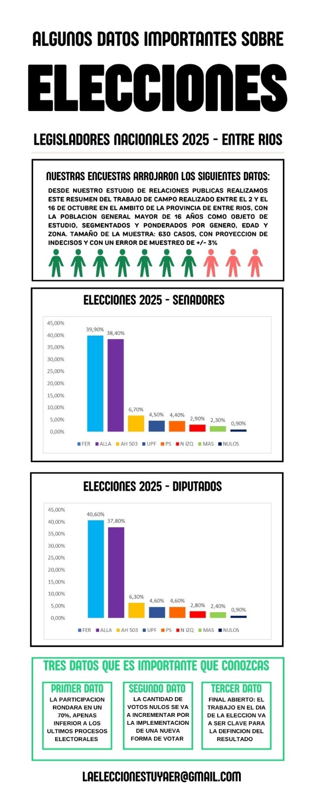 Una encuesta de la consultora La Elección Tuya sobre las legislativas 2025 en Entre Ríos proyecta un escenario competitivo entre las dos principales fuerzas.